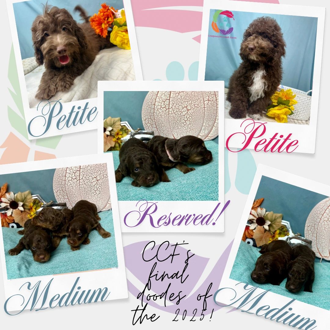 We have some seasonal goat milk soaps out! We have petite/mini & medium labradoodles available. We also have frenchie puppies available. You can also check out what we have coming down the pipeline and let us know if you would like to get on a reservation list for any of our animals. Click the links below to see what we have now. We als